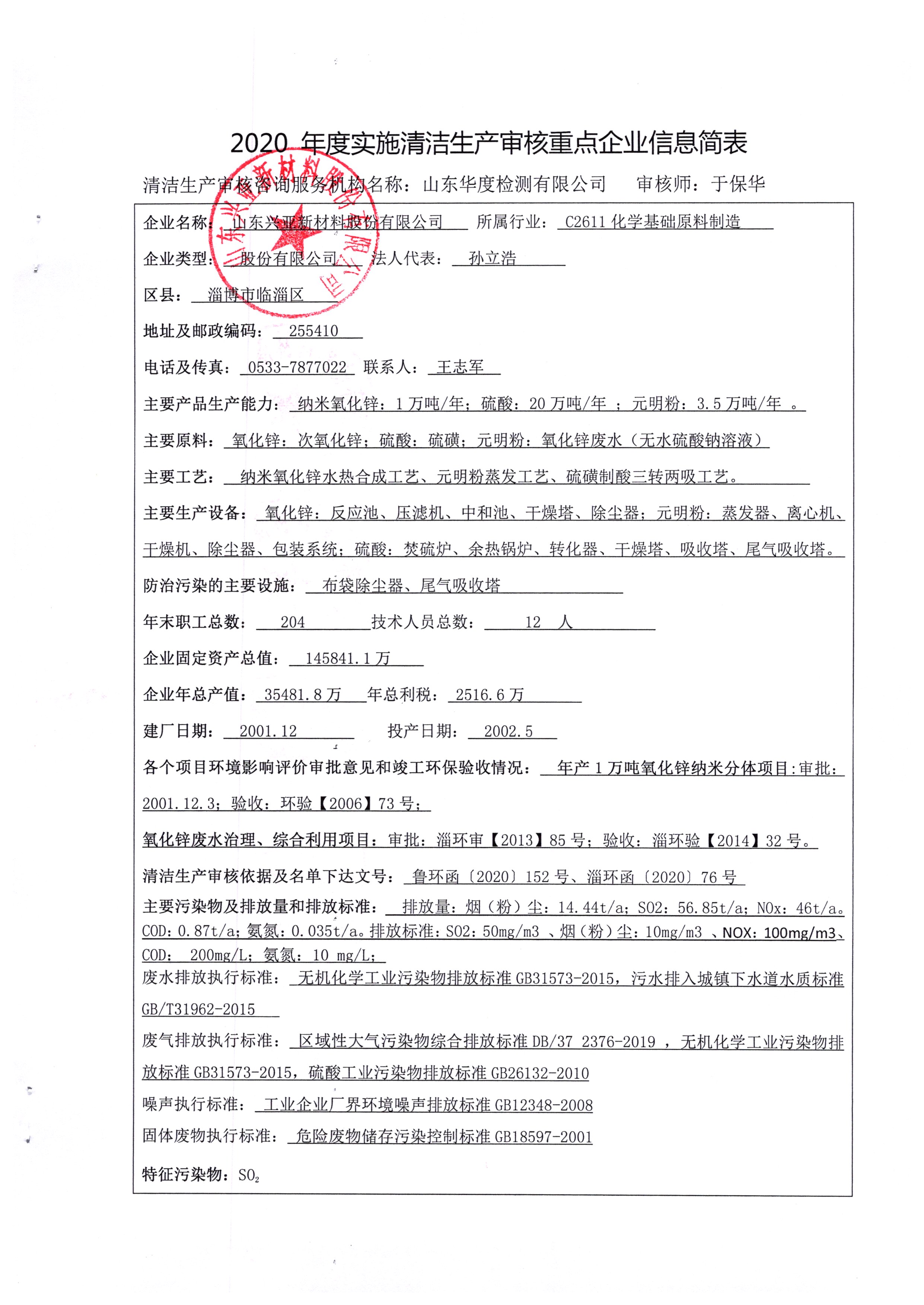 2020年度实施清洁生产审核重点企业信息简表公示
